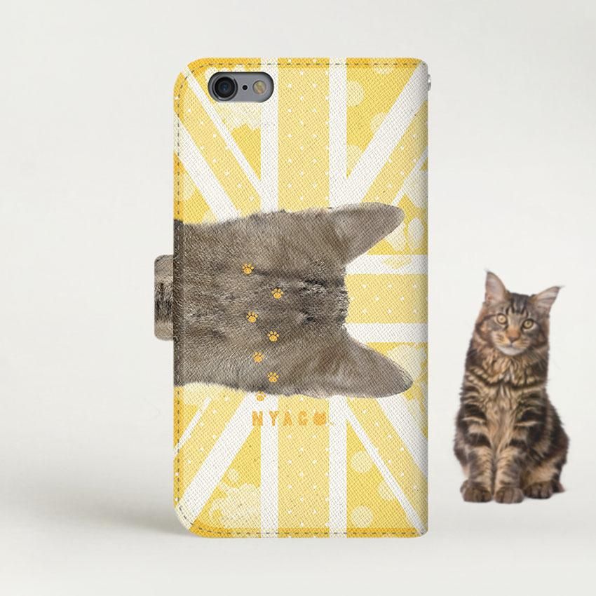 with NYAGO 手帳型 / 薄型 docomo Galaxy NYAGO ノート キュート 肉球をペロペロするにゃ〜。 - にゃんとも ユニオンジャック だにゃ〜。 イエロー 2436