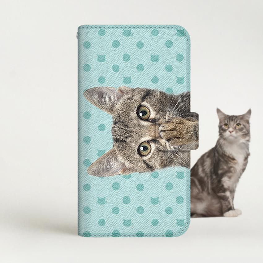 with NYAGO 手帳型 / 薄型 docomo AQUOS NYAGO ノート キュート 肉球をペロペロするにゃ〜。 - ミント グリーン ドット だにゃ〜。 ミントグリーン 2297