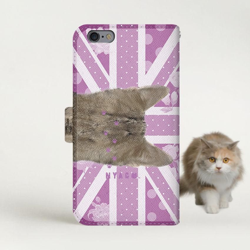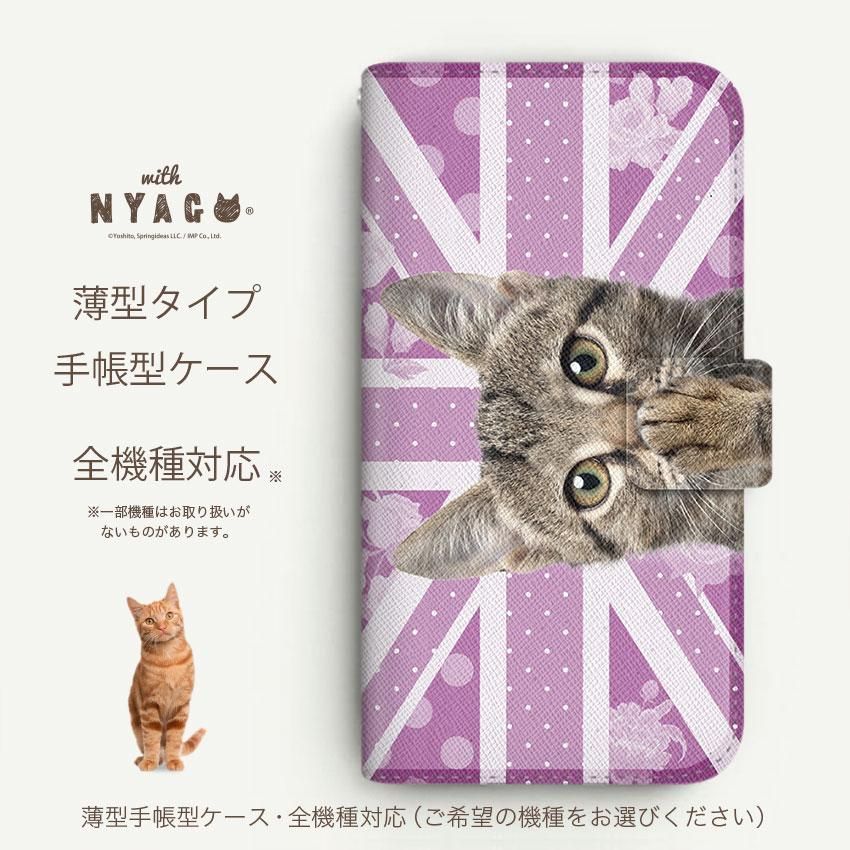 with NYAGO 手帳型 / 薄型 docomo AQUOS NYAGO ノート キュート 肉球をペロペロするにゃ〜。 - にゃんとも ユニオンジャック だにゃ〜。 パープル 2432