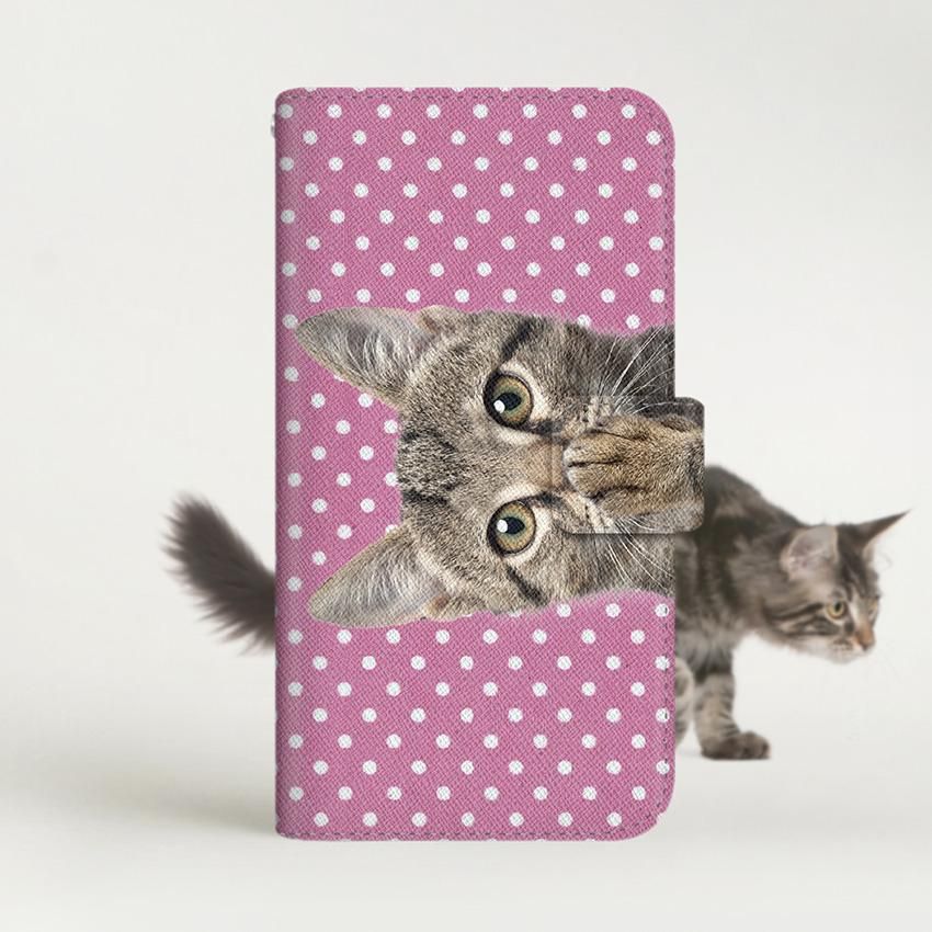 with NYAGO 手帳型 / 薄型 docomo AQUOS NYAGO ノート キュート 肉球をペロペロするにゃ〜。 - サマー ドット だにゃ〜。 - ピンク 2719