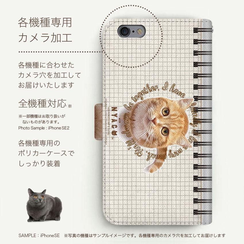 with NYAGO 手帳型 / 薄型 docomo AQUOS NYAGO ノート キュート 甘えんぼう 茶トラ 猫 ペロペロするにゃ〜。 方眼紙 ノート だにゃ〜。 2757