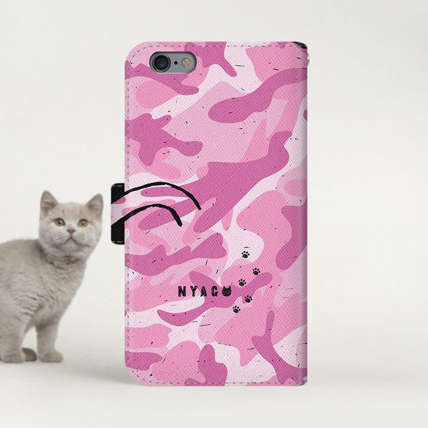 with NYAGO 手帳型 / 薄型 docomo その他 NYAGO ノート しっぽ カモ柄 ピンク 2251