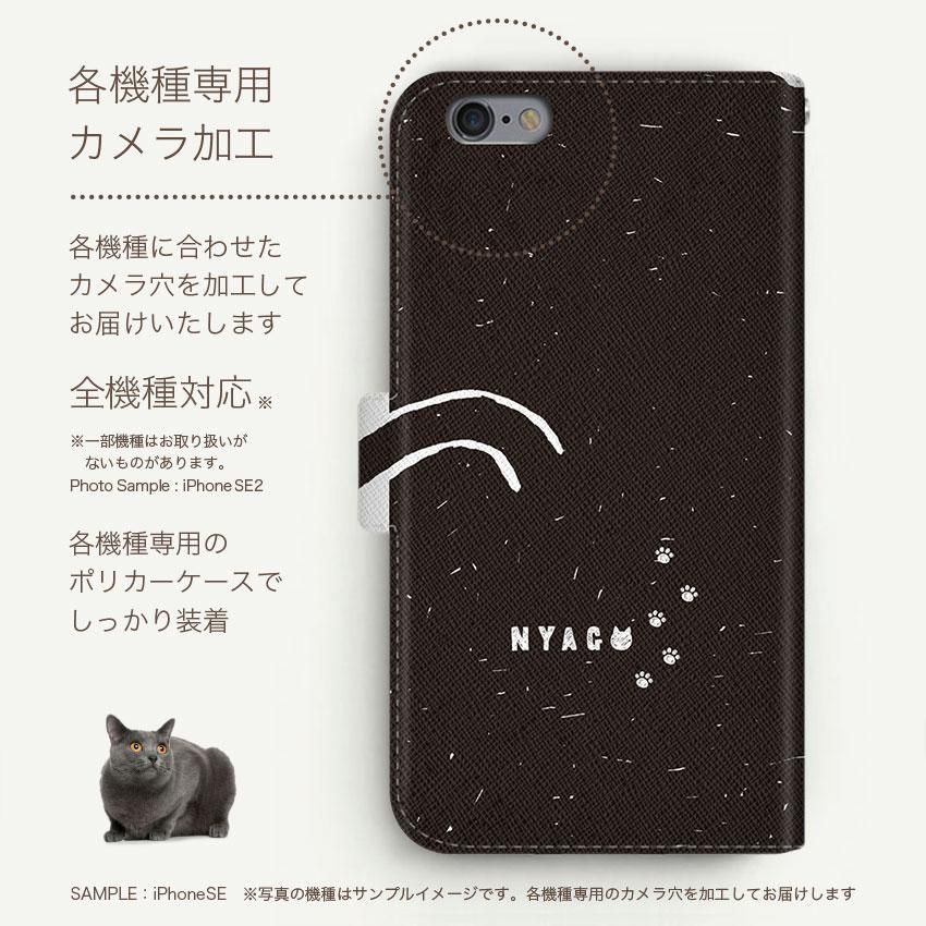 with NYAGO 手帳型 / 薄型 docomo その他 NYAGO ノート しっぽ モノクロ ビッグ ひげ キャット 2328