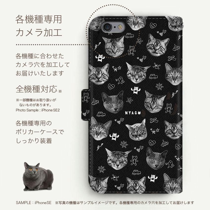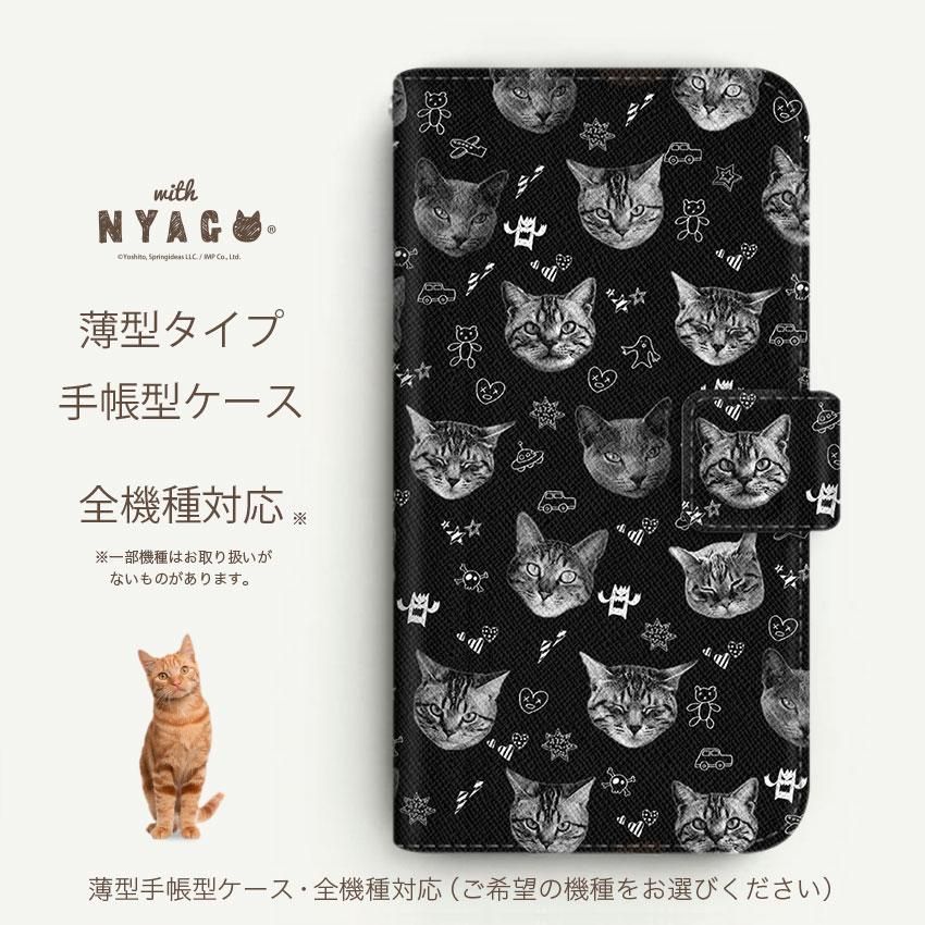 with NYAGO 手帳型 / 薄型 docomo その他 ノート キュート フェイス モノクロ キャット 2605
