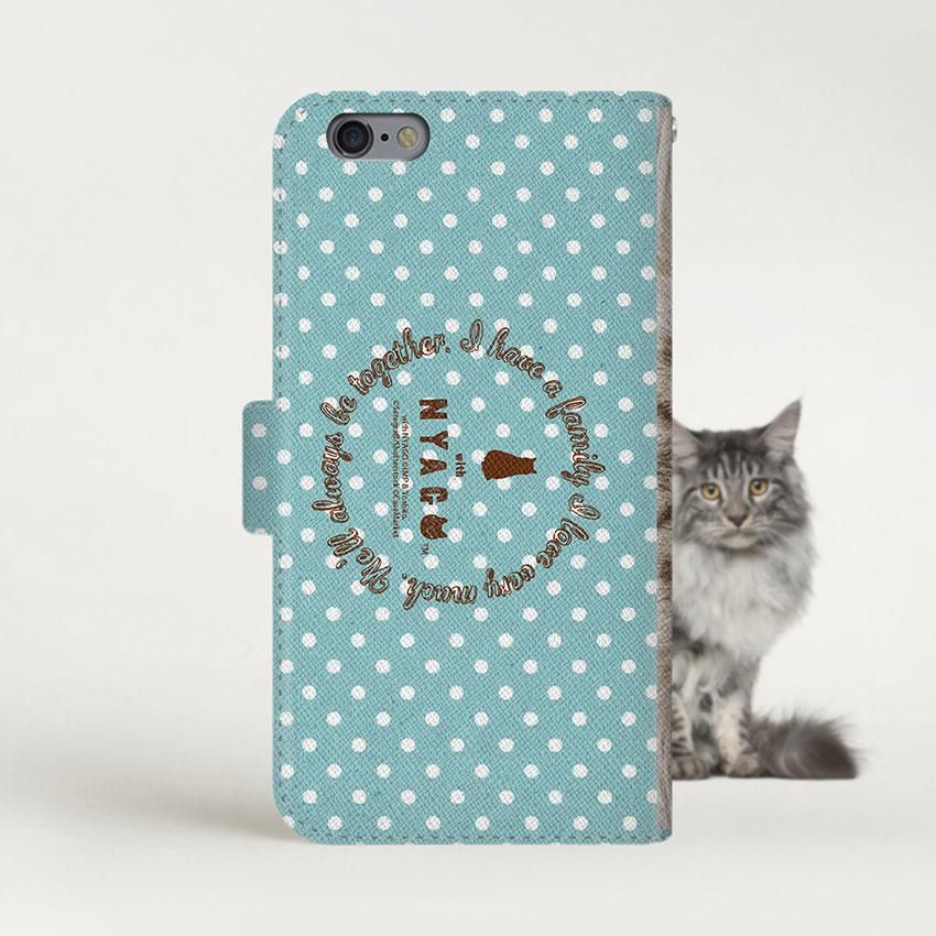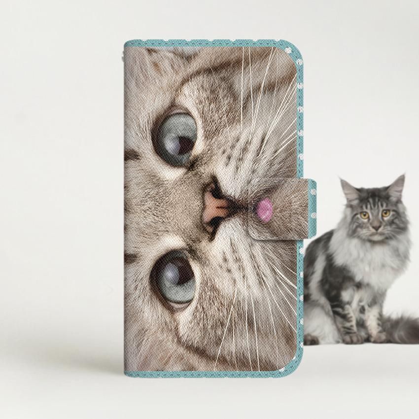 with NYAGO 手帳型 / 薄型 docomo その他 NYAGO ノート ナチュラル サマー ドット 猫のはなチュー ペロペロだにゃ〜。- 猫ちゃん顔アップ - ミントブルー 2712