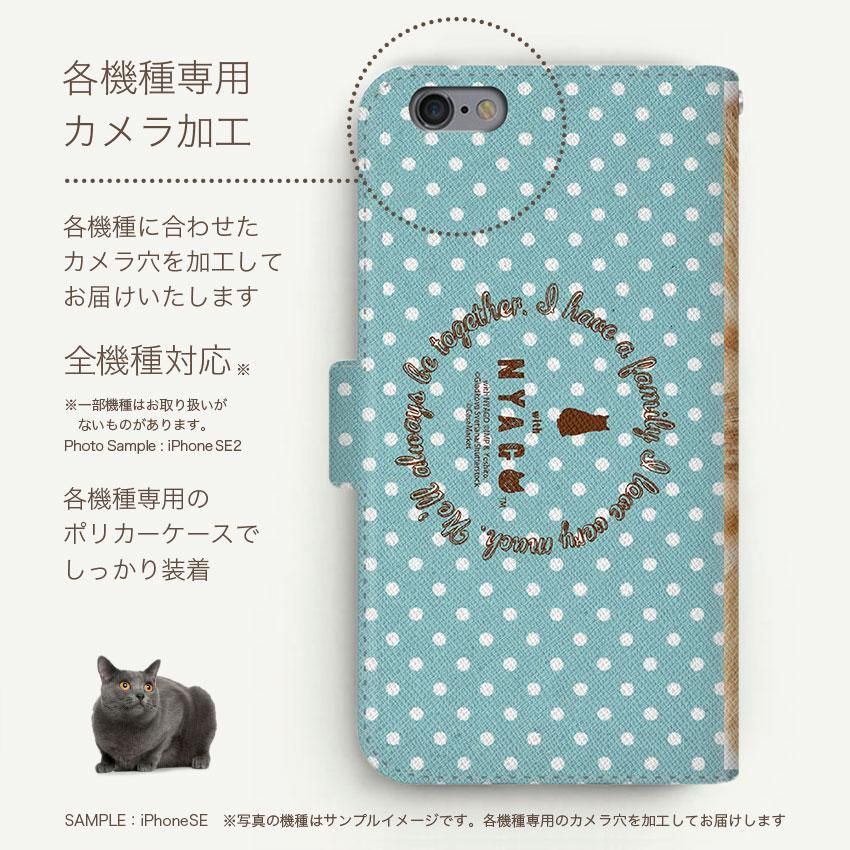with NYAGO 手帳型 / 薄型 docomo その他 NYAGO ノート ナチュラル サマー ドット 甘えんぼう ペロペロだにゃ〜。 茶トラ 猫ちゃん 顔アップ ミントブルー 2748