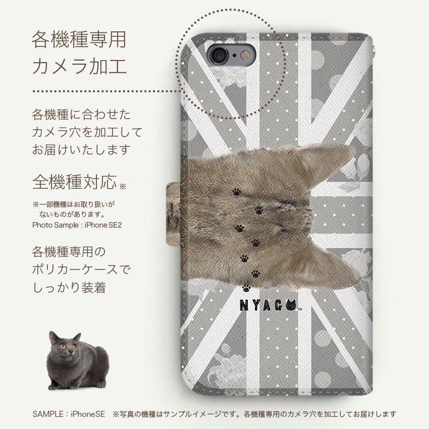 with NYAGO 手帳型 / 薄型 au Xperia NYAGO ノート キュート 肉球をペロペロするにゃ〜。 - にゃんとも ユニオンジャック だにゃ〜。 モノクロ 2437