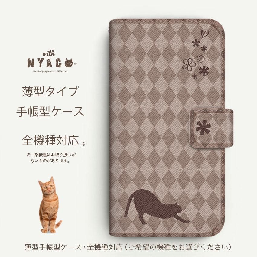 with NYAGO 手帳型 / 薄型 au Xperia NYAGO ノート フレンチ フラワー ダイアリー キャット シルエット ダイヤ柄 & のびのび?! チョコレート 2457