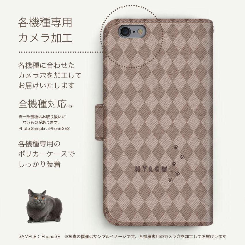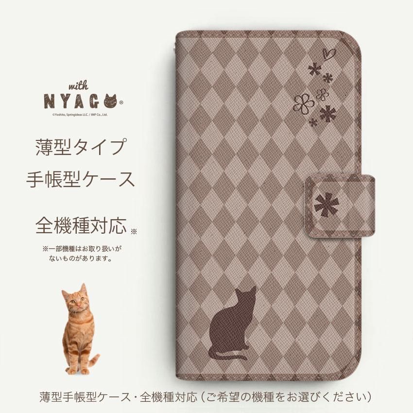 with NYAGO 手帳型 / 薄型 au Xperia NYAGO ノート フレンチ フラワー ダイアリー キャット シルエット ダイヤ柄 & おすましだにゃん。 チョコレート 2459