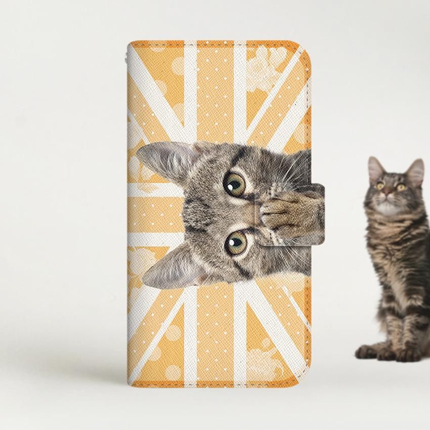 with NYAGO 手帳型 / 薄型 au Galaxy NYAGO ノート キュート 肉球をペロペロするにゃ〜。 - にゃんとも ユニオンジャック だにゃ〜。 オレンジ 2433
