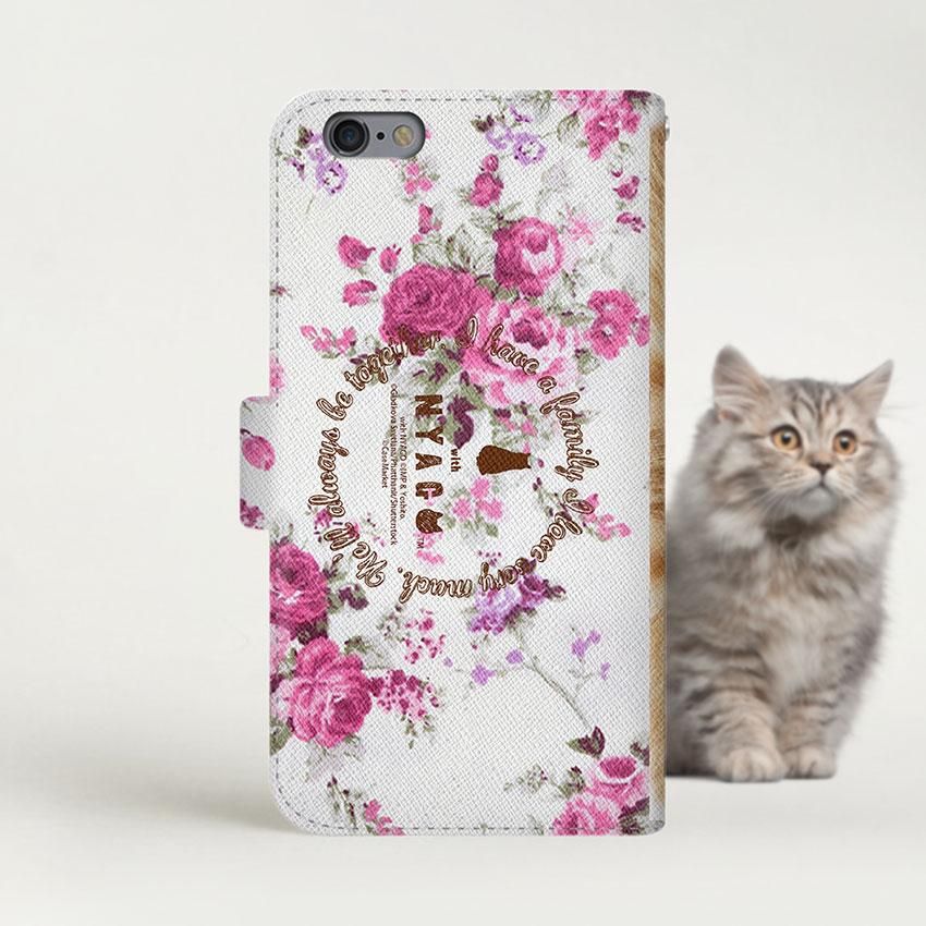 with NYAGO 手帳型 / 薄型 au Galaxy NYAGO ノート ナチュラル サマー フラワー ドット 甘えんぼう 茶トラ ペロペロだにゃ〜。 茶トラ 猫ちゃん 顔 ピンク 2747