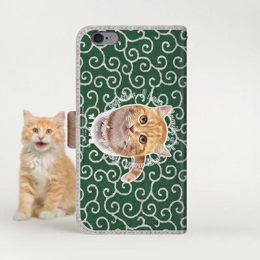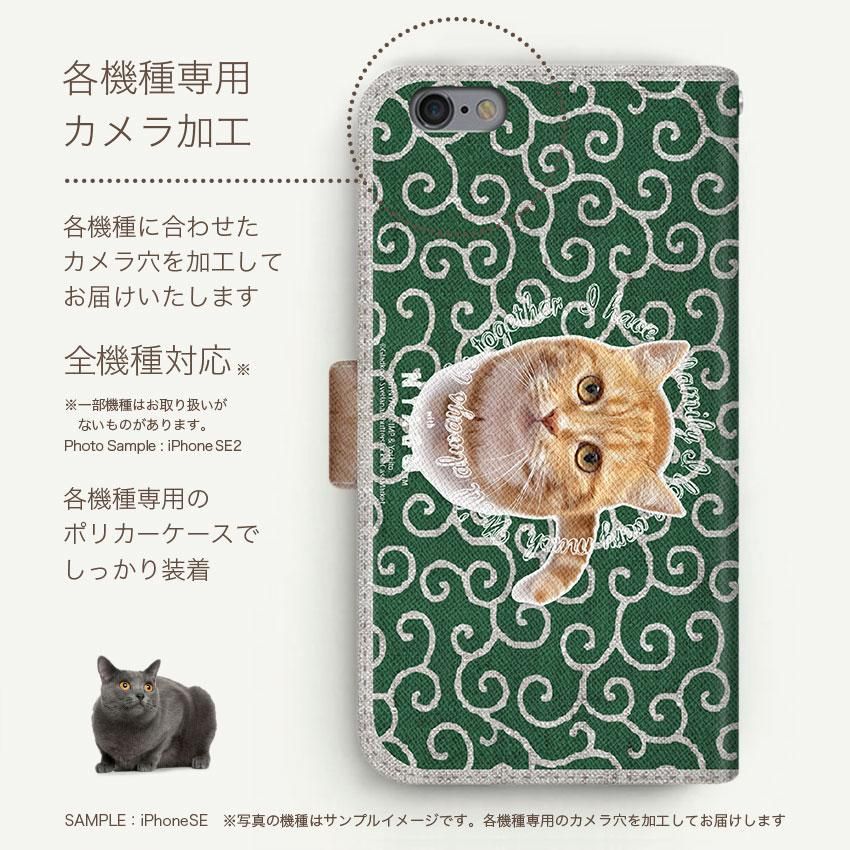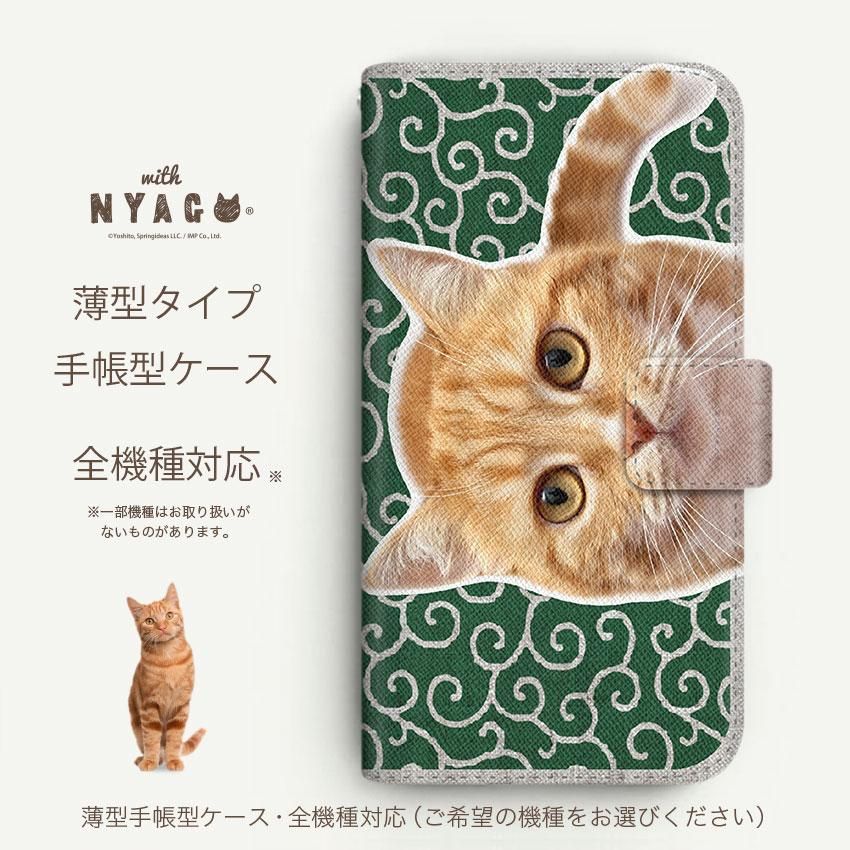 with NYAGO 手帳型 / 薄型 au Galaxy NYAGO ノート キュート 甘えんぼう 茶トラ 猫 ペロペロするにゃ〜。 にゃんとも 和風 だにゃ~。 唐草模様 緑 2759