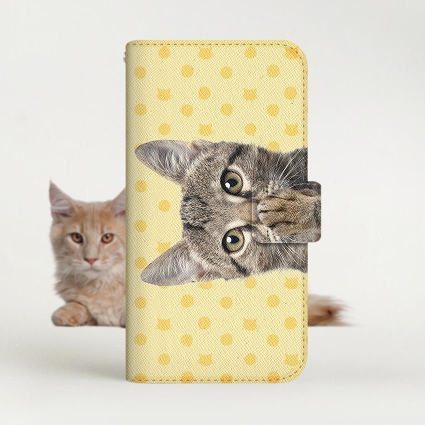 with NYAGO 手帳型 / 薄型 au AQUOS NYAGO ノート キュート 肉球をペロペロするにゃ〜。 - イエロー ドット だにゃ〜。 イエロー 2298