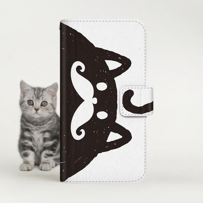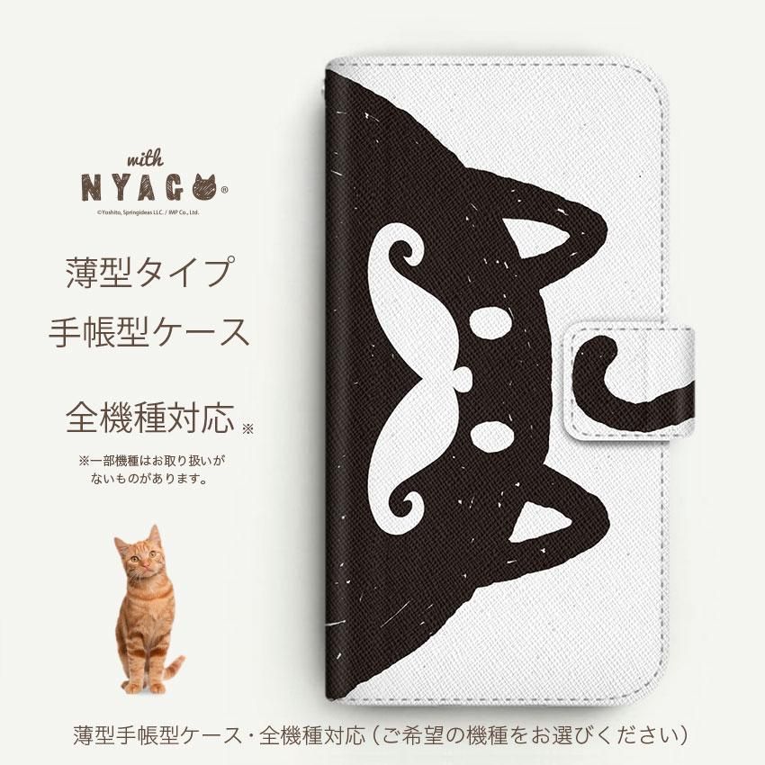 with NYAGO 手帳型 / 薄型 au AQUOS NYAGO ノート しっぽ モノクロ ビッグ ひげ キャット 2328