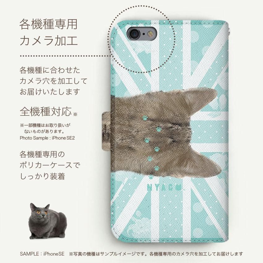 with NYAGO 手帳型 / 薄型 au AQUOS NYAGO ノート キュート 肉球をペロペロするにゃ〜。 - にゃんとも ユニオンジャック だにゃ〜。 グリーン 2435