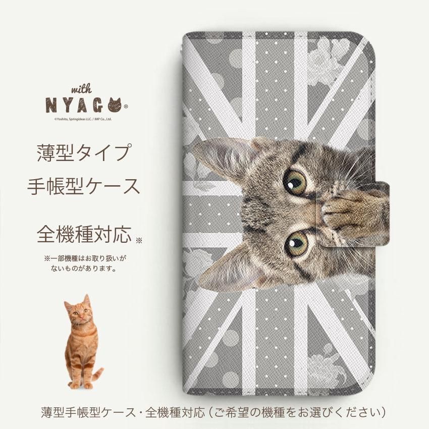 with NYAGO 手帳型 / 薄型 au AQUOS NYAGO ノート キュート 肉球をペロペロするにゃ〜。 - にゃんとも ユニオンジャック だにゃ〜。 モノクロ 2437