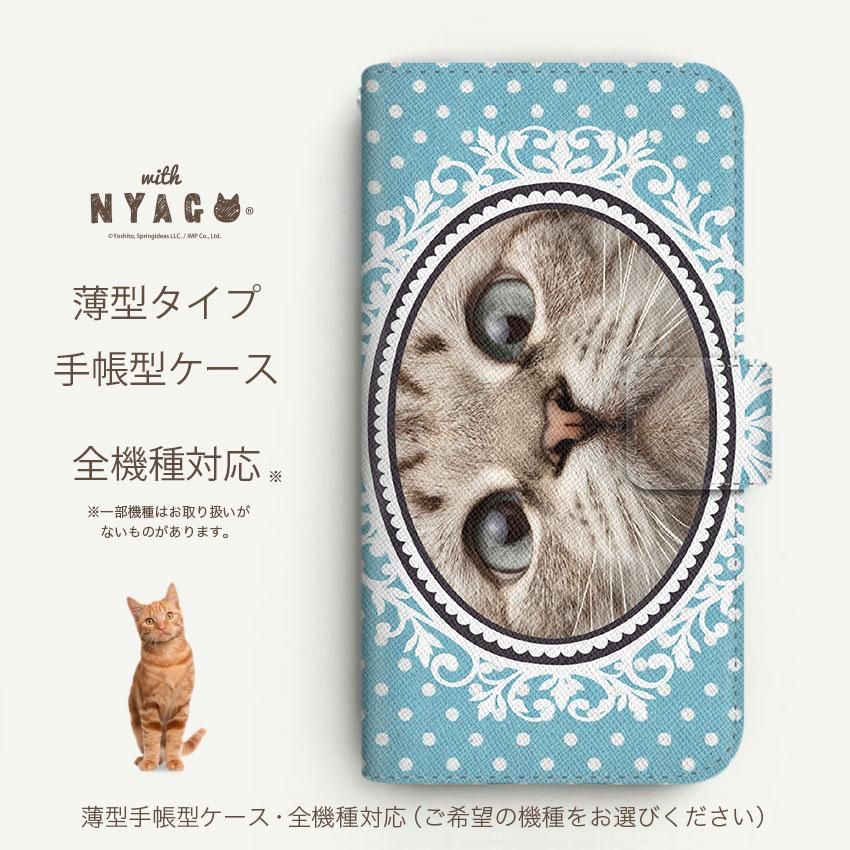 with NYAGO 手帳型 / 薄型 au AQUOS NYAGO ノート ボタニカルリース 猫のはなチュー ペロペロだにゃ〜。- サマー ドット - ミントブルー 2711