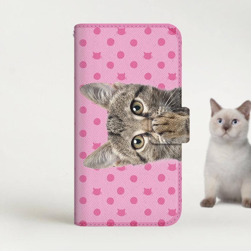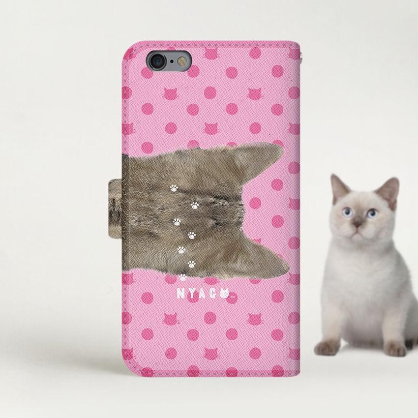 with NYAGO 手帳型 / 薄型 au その他 NYAGO ノート キュート 肉球をペロペロするにゃ〜。 - ピンク ドット だにゃ〜。 ピンク 2293
