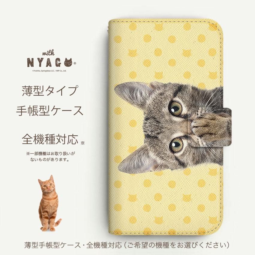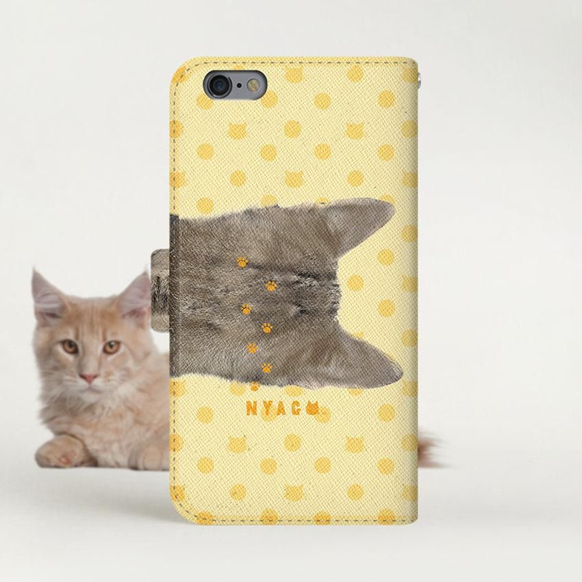 with NYAGO 手帳型 / 薄型 au その他 NYAGO ノート キュート 肉球をペロペロするにゃ〜。 - イエロー ドット だにゃ〜。 イエロー 2298
