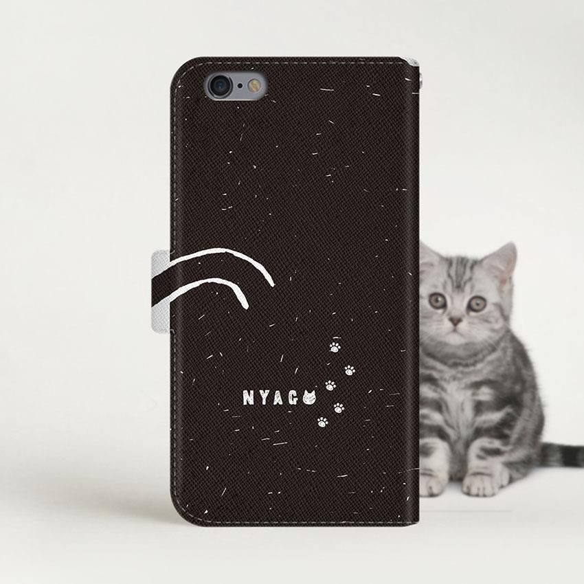 with NYAGO 手帳型 / 薄型 au その他 NYAGO ノート しっぽ モノクロ ビッグ ひげ キャット 2328
