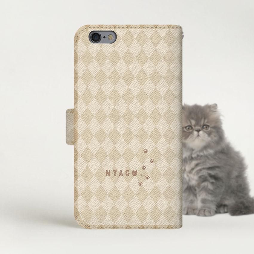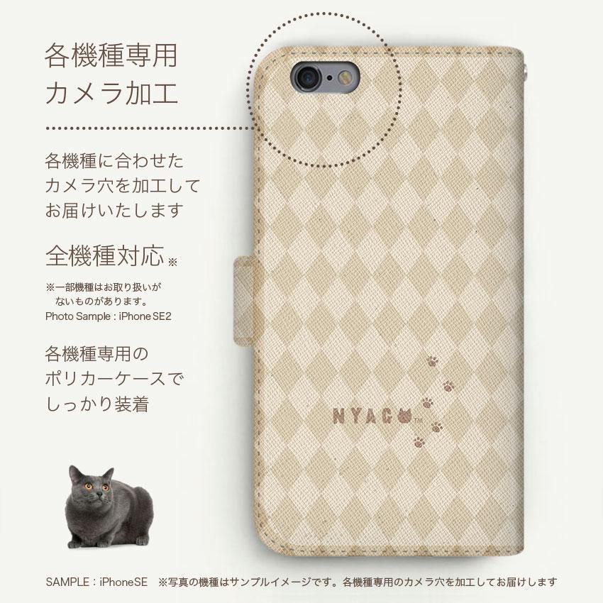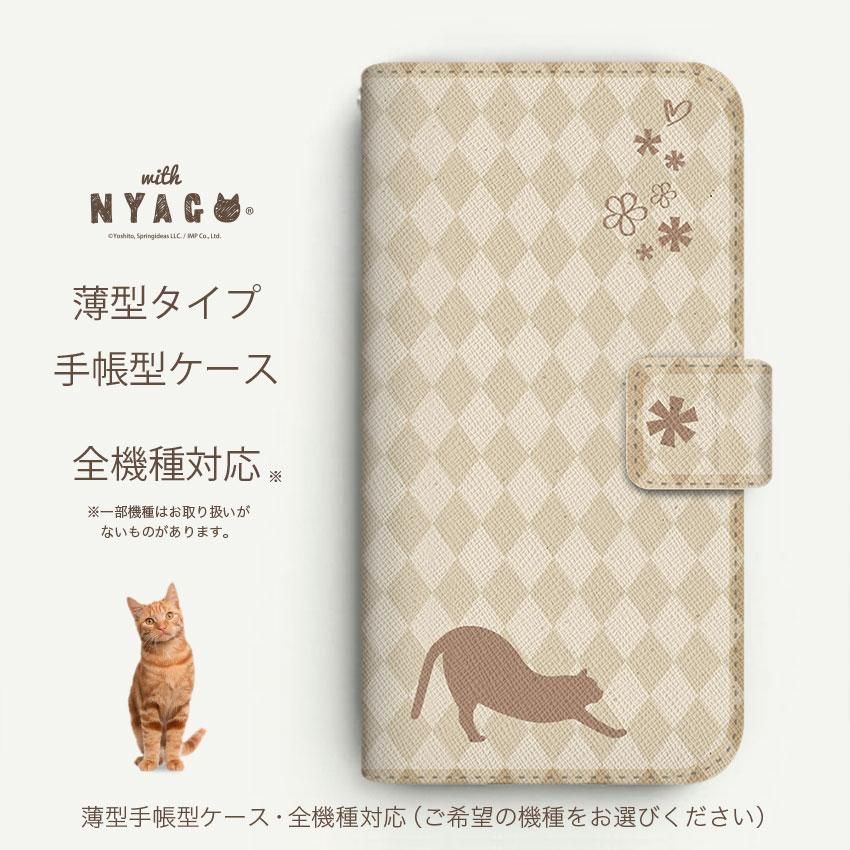 with NYAGO 手帳型 / 薄型 SoftBank NYAGO ノート フレンチ フラワー ダイアリー キャット シルエット ダイヤ柄 & のびのび?! クリーム 2456