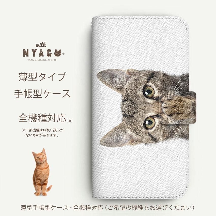 with NYAGO 手帳型 / 薄型 楽天モバイル/UQ mobile NYAGO ノート キュート 肉球をペロペロするにゃ〜。 2095