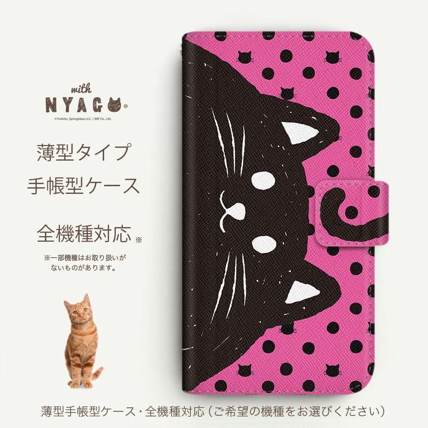 with NYAGO 手帳型 / 薄型 楽天モバイル/UQ mobile NYAGO ノート しっぽ ピンク 2115