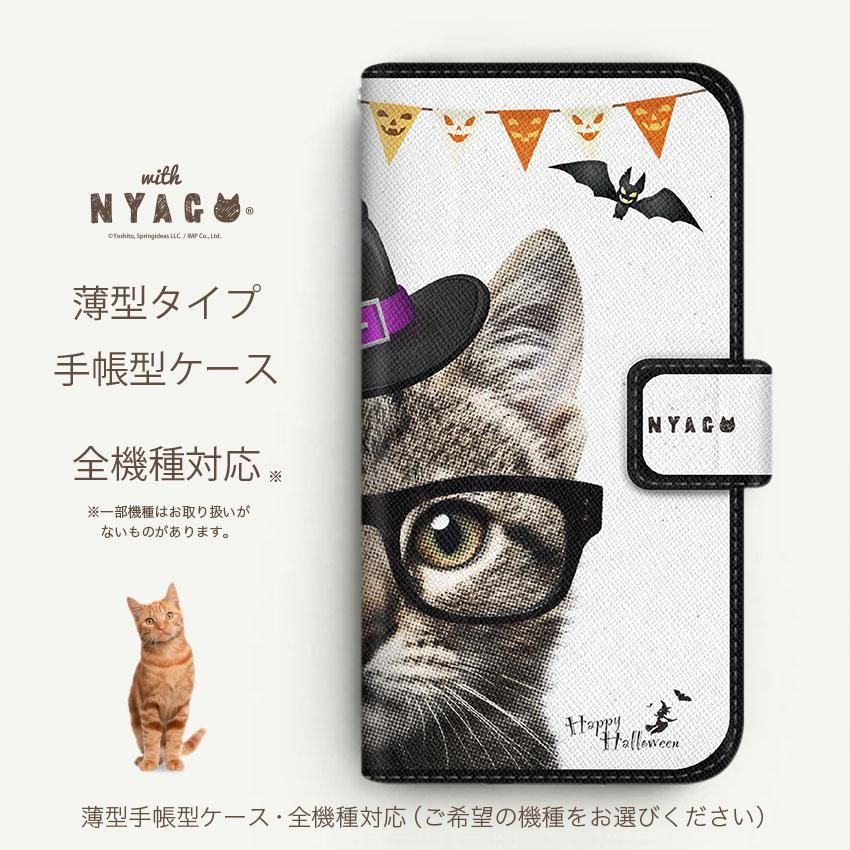 with NYAGO 手帳型 / 薄型 楽天モバイル/UQ mobile NYAGO ノート キュート メガネ フェイス キャット - ハロウィン ver 2014 限定 2155