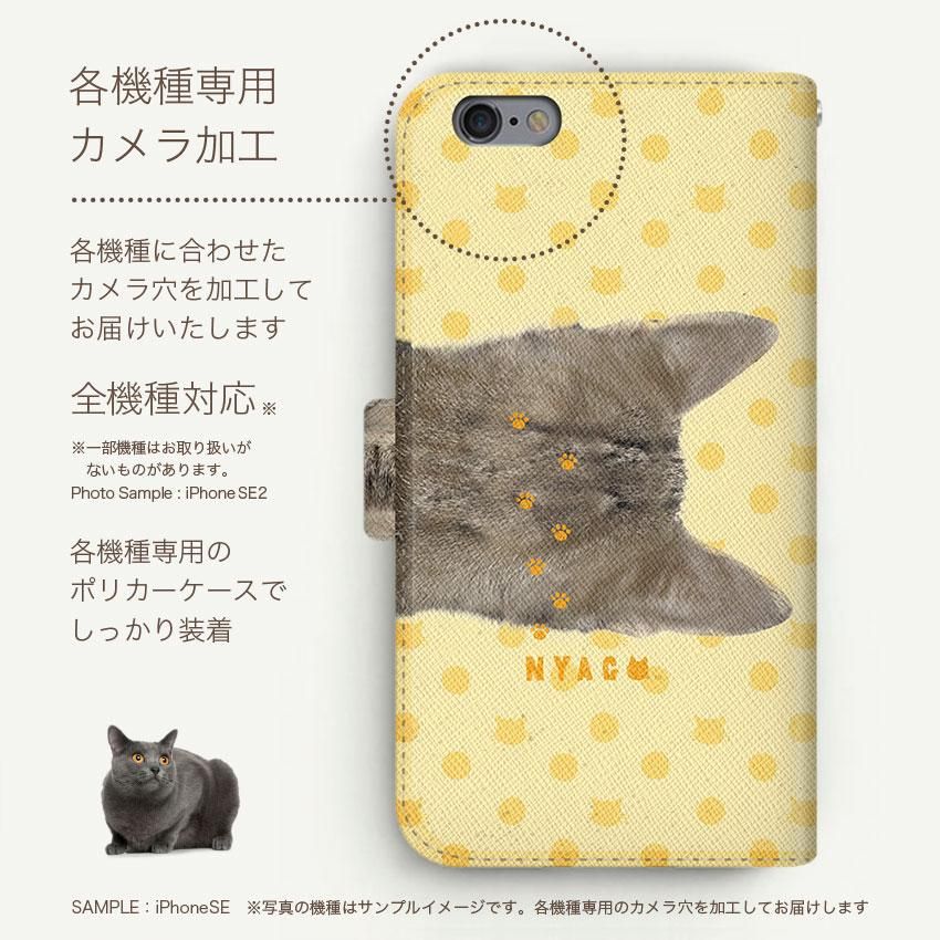 with NYAGO 手帳型 / 薄型 楽天モバイル/UQ mobile NYAGO ノート キュート 肉球をペロペロするにゃ〜。 - イエロー ドット だにゃ〜。 イエロー 2298