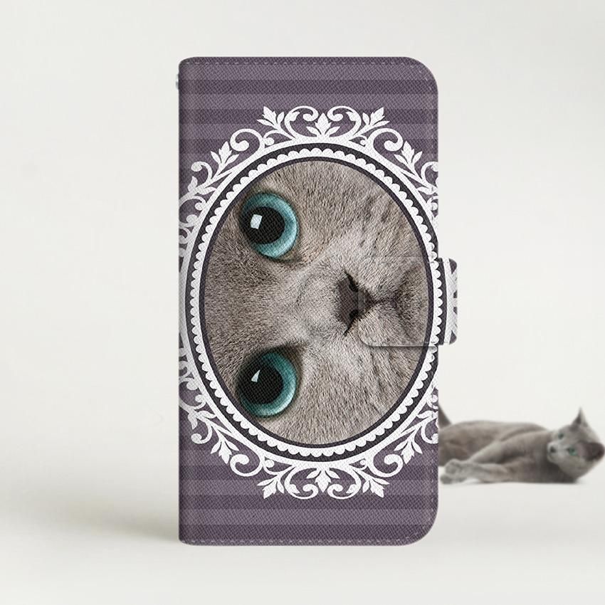 with NYAGO 手帳型 / 薄型 楽天モバイル/UQ mobile NYAGO ノート ボタニカルリース ペロペロだにゃ〜。- ロシアンブルー - 2669