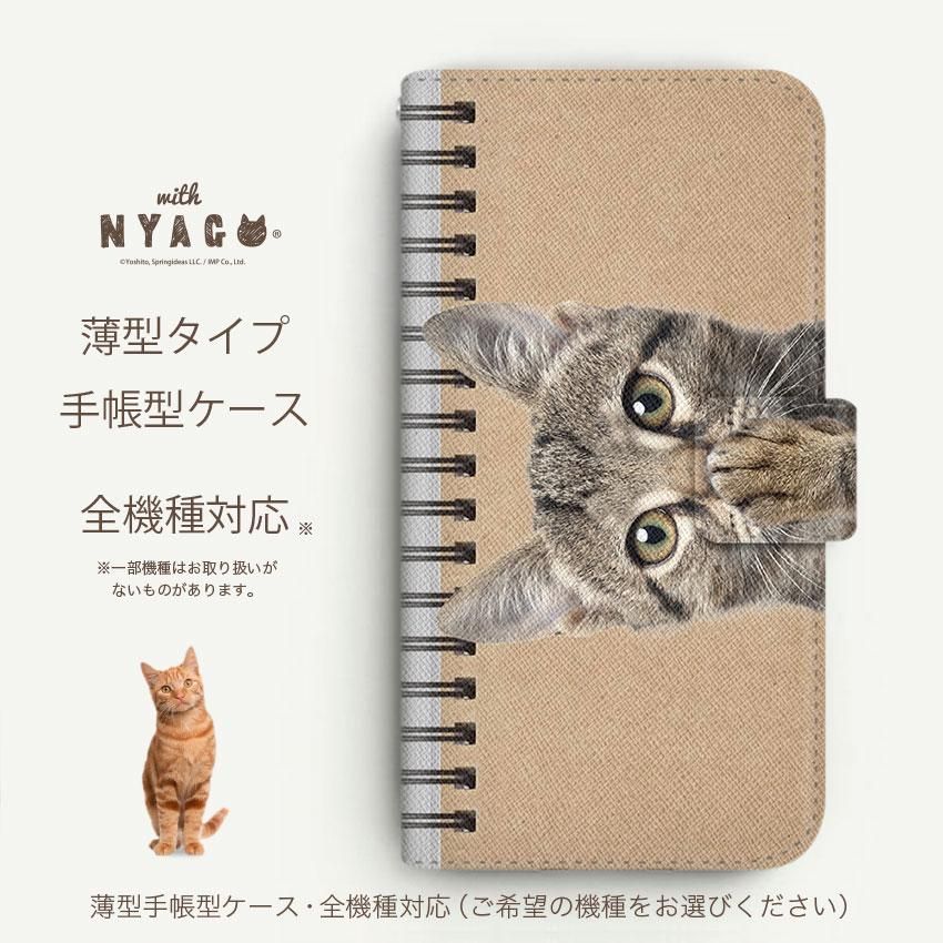 with NYAGO 手帳型 / 薄型 楽天モバイル/UQ mobile NYAGO ノート キュート 肉球をペロペロするにゃ〜。 - スケッチブック だにゃ〜。 2676