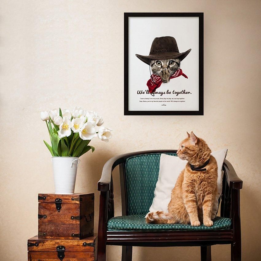 with NYAGO アートポスター フレーム付 カウボーイ ソラちゃん 肉球をペロペロするにゃー。 ブラック 7075