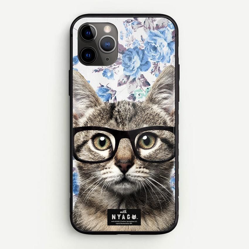 with NYAGO 背面強化ガラス TPUバンパー 背面ケース NYAGO ノート キュート メガネ フェイス キャット - サマー フラワー だにゃ〜。 ブルー 2726