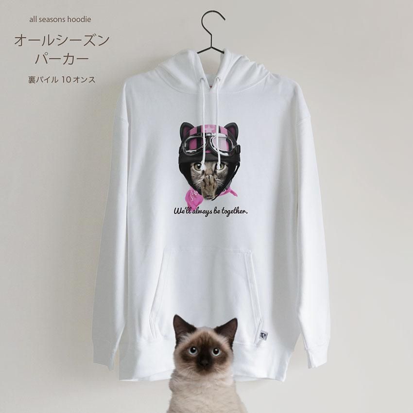 with NYAGO パーカー(オールシーズン) 【 ライダー ピンク ソラちゃん 肉球をペロペロするにゃ ホワイト -1007 】