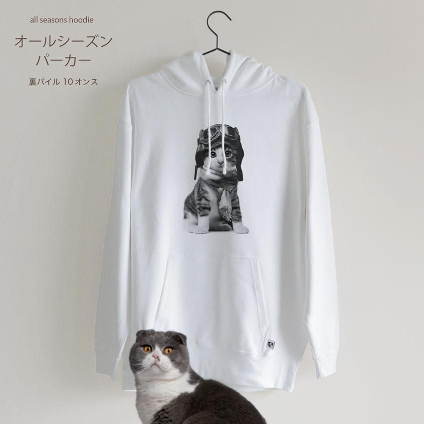 with NYAGO パーカー(オールシーズン) 【 パイロット ノアちゃん キジ白 モノクロ ホワイト -1014 】
