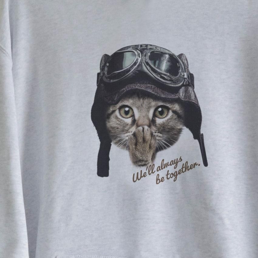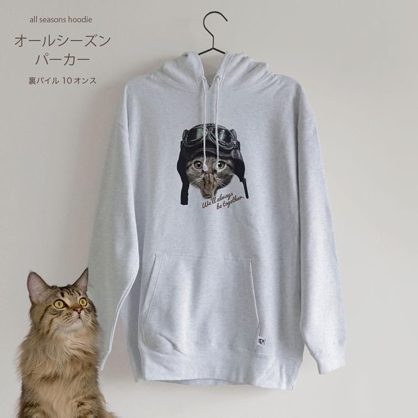 with NYAGO パーカー(オールシーズン) 【 パイロット ソラちゃん 肉球をペロペロするにゃ 杢グレー -1006 】