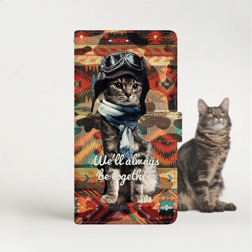 with NYAGO 手帳型 / 厚手 docomo Xperia パイロット ソラちゃん 肉球をペロペロするにゃー。 かわいい猫フェイス手帳 ヨセミテ オレンジ 7175