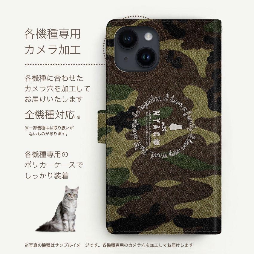with NYAGO 手帳型 / 厚手 docomo Xperia パイロット ソラちゃん 肉球をペロペロするにゃー。 アーミー 迷彩柄 カモ柄 かわいい 猫 フェイス グリーン 7178