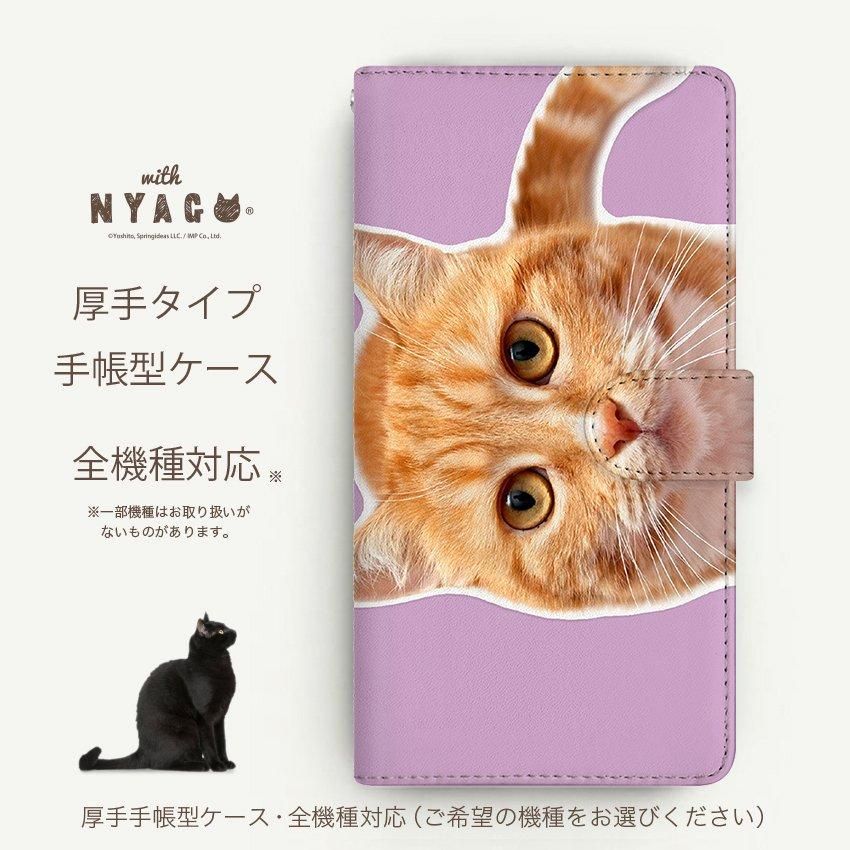 with NYAGO 手帳型 / 厚手 docomo Galaxy NYAGO ノート キュート 甘えんぼう 茶トラ 猫 ペロペロするにゃ〜。 ライト パープル 2934