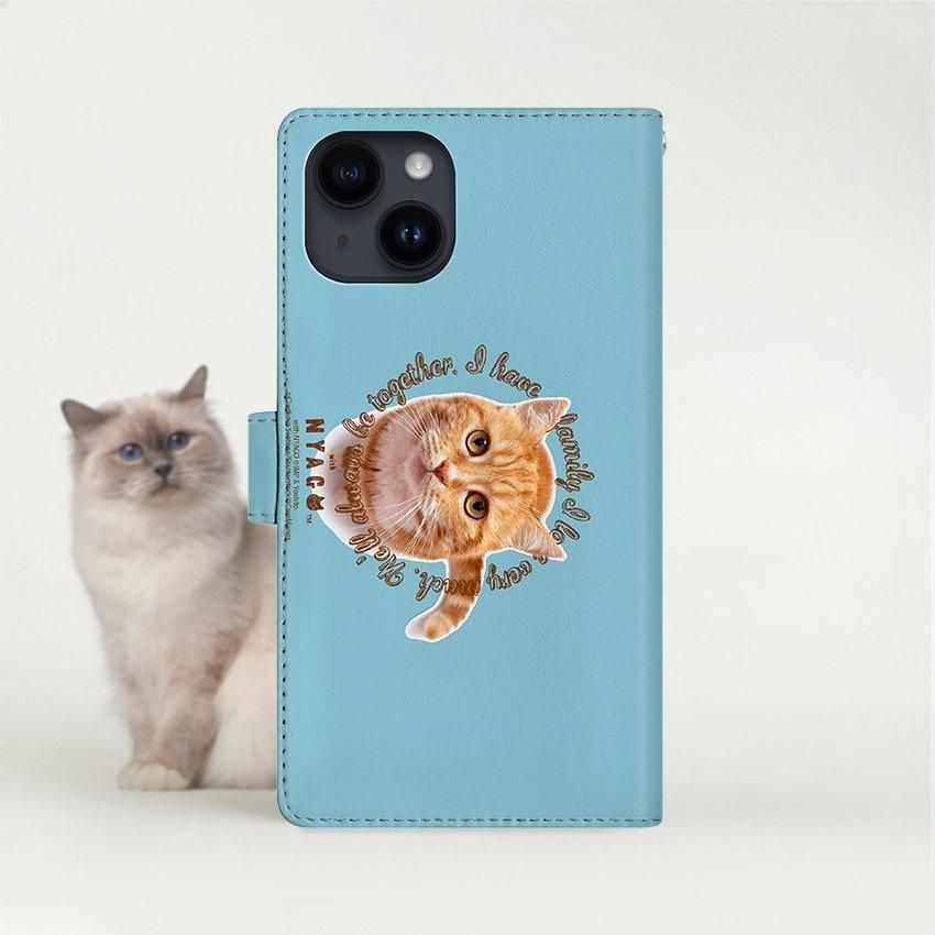 with NYAGO 手帳型 / 厚手 docomo Galaxy NYAGO ノート キュート 甘えんぼう 茶トラ 猫 ペロペロするにゃ〜。 ホライズン ブルー 2936