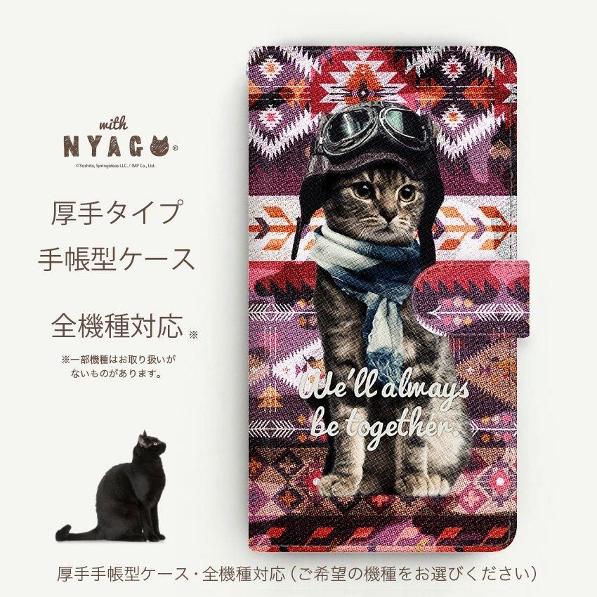 with NYAGO 手帳型 / 厚手 docomo AQUOS パイロット ソラちゃん 肉球をペロペロするにゃー。 かわいい猫フェイス手帳 ザイオン ピンク 7177