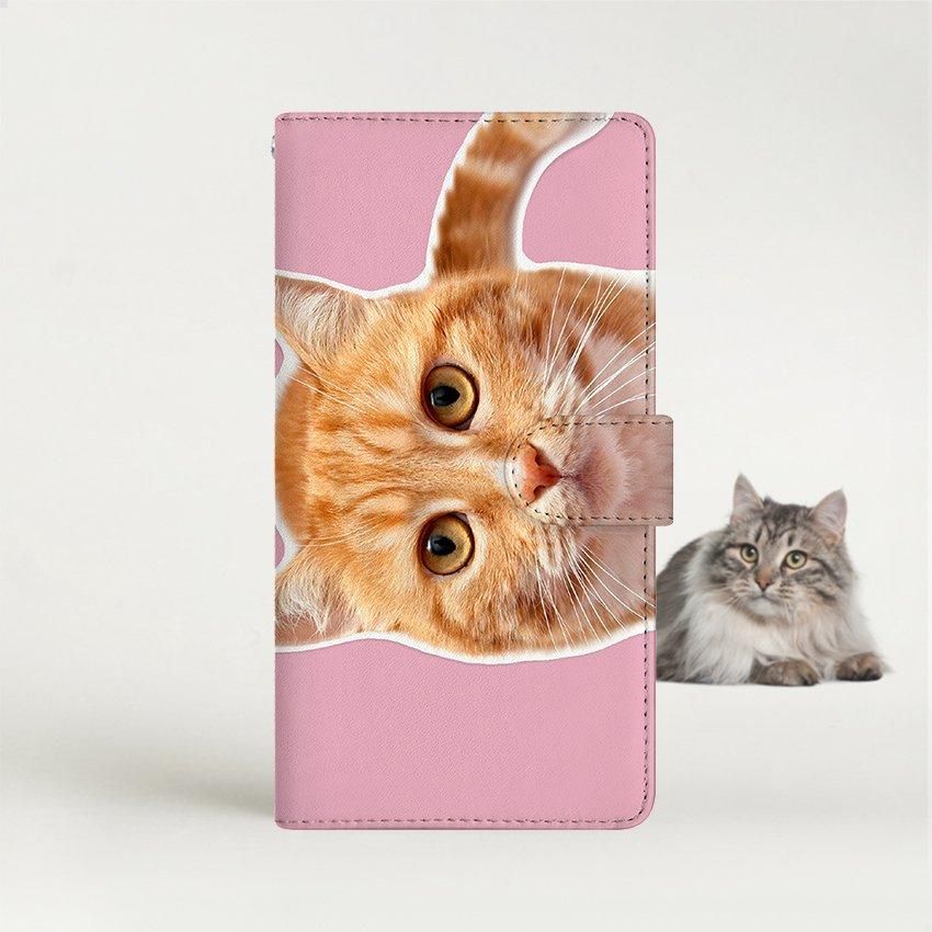 with NYAGO 手帳型 / 厚手 au Galaxy NYAGO ノート キュート 甘えんぼう 茶トラ 猫 ペロペロするにゃ〜。 スウィート ピンク 2933