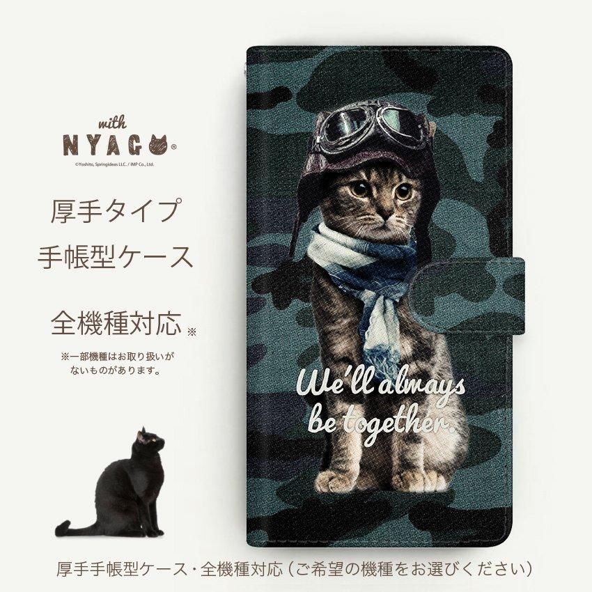 with NYAGO 手帳型 / 厚手 au Galaxy パイロット ソラちゃん 肉球をペロペロするにゃー。 アーミー 迷彩柄 カモ柄 かわいい 猫 フェイス ブルー 7179
