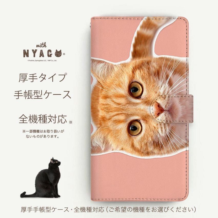 with NYAGO 手帳型 / 厚手 楽天モバイル/UQ mobile NYAGO ノート キュート 甘えんぼう 茶トラ 猫 ペロペロするにゃ〜。 バーミリオン オレンジ 2938