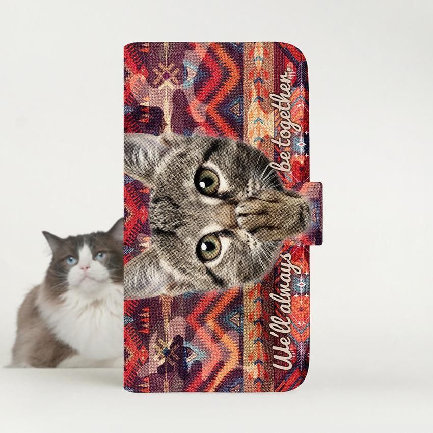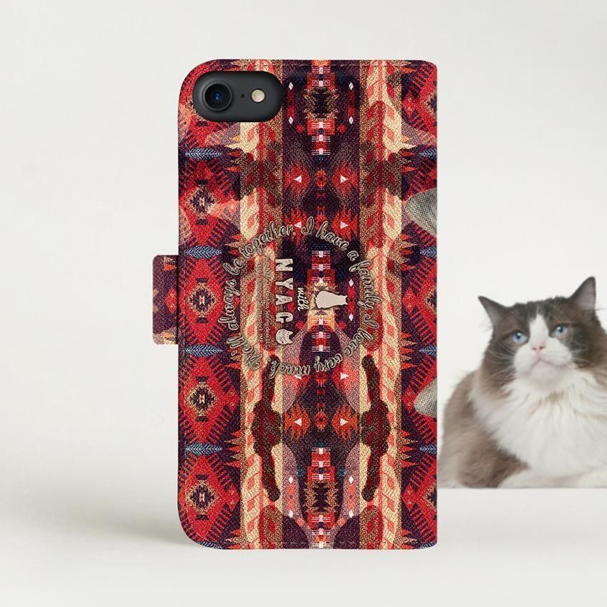 with NYAGO 手帳型 / 厚手 Google Pixel ソラちゃん 肉球をペロペロするにゃー。 ネイティブ柄 エスニック かわいい猫フェイス手帳 セドナ レッド 7105