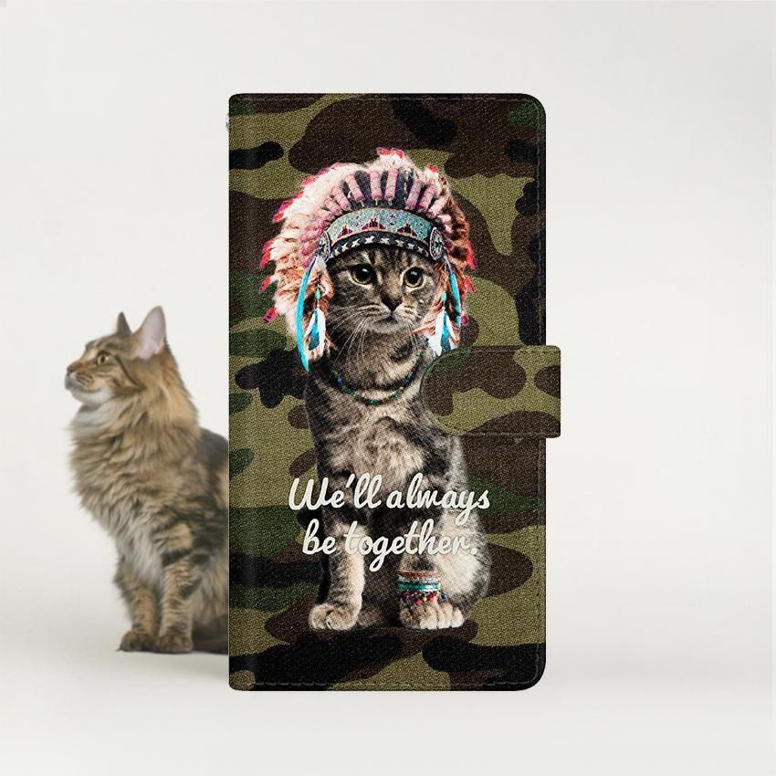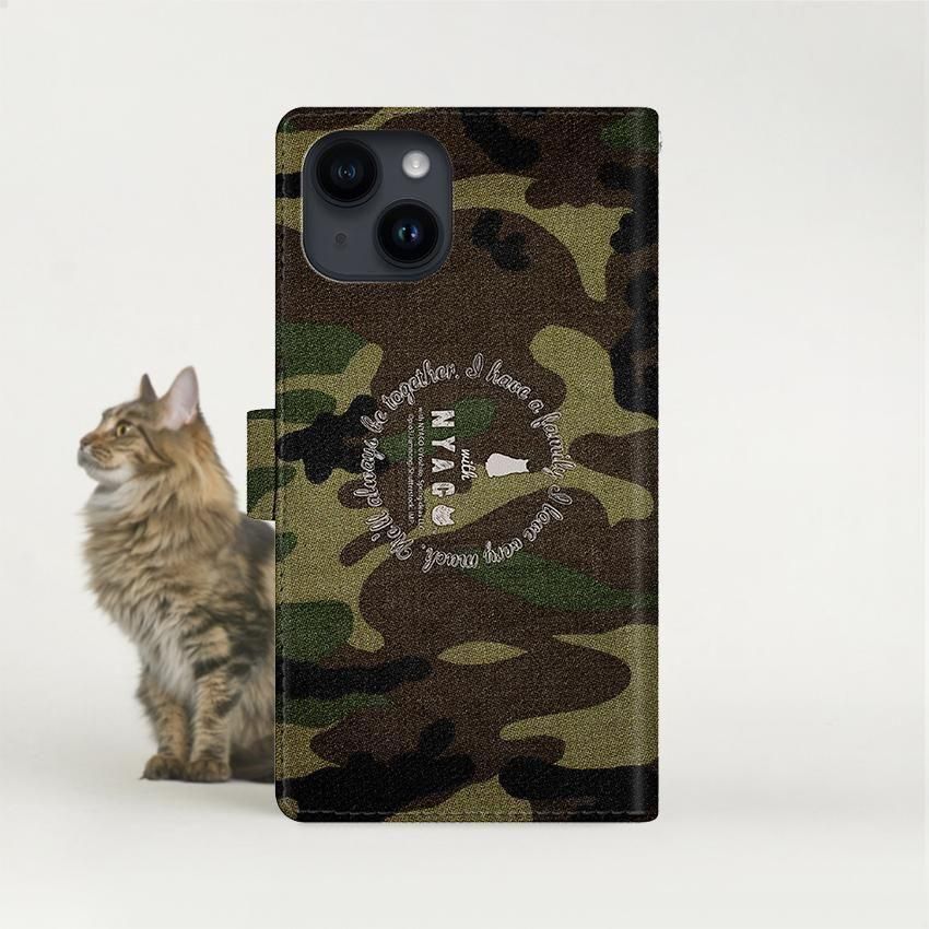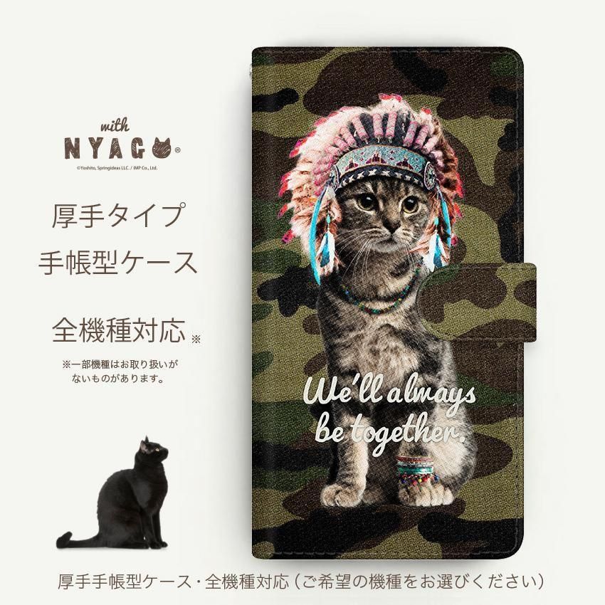 with NYAGO 手帳型 / 厚手 Google Pixel インディアン ソラちゃん 肉球をペロペロするにゃー。 アーミー 迷彩柄 カモ柄 かわいい 猫 フェイス グリーン 7172