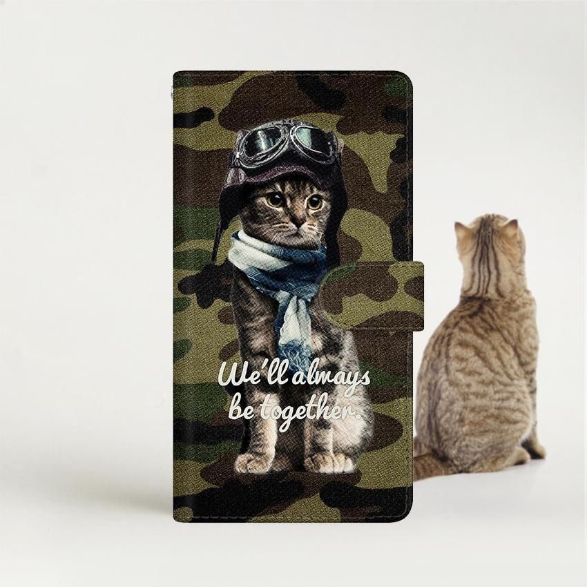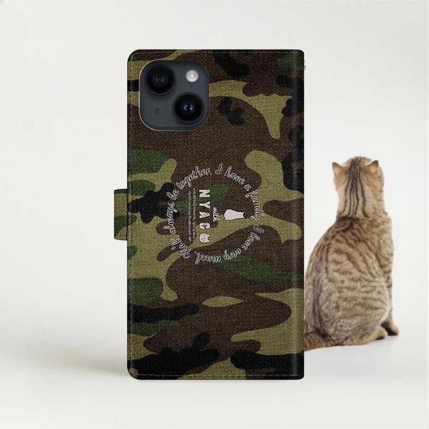 with NYAGO 手帳型 / 厚手 Google Pixel パイロット ソラちゃん 肉球をペロペロするにゃー。 アーミー 迷彩柄 カモ柄 かわいい 猫 フェイス グリーン 7178
