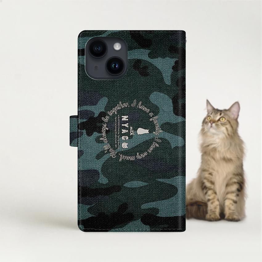 with NYAGO 手帳型 / 厚手 Google Pixel パイロット ソラちゃん 肉球をペロペロするにゃー。 アーミー 迷彩柄 カモ柄 かわいい 猫 フェイス ブルー 7179