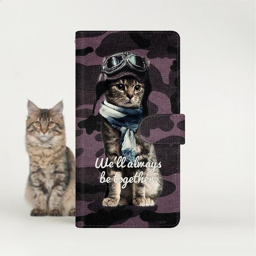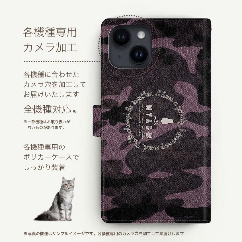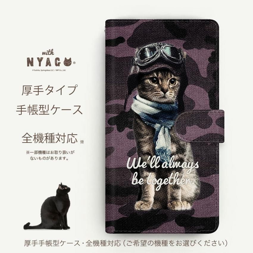 with NYAGO 手帳型 / 厚手 Google Pixel パイロット ソラちゃん 肉球をペロペロするにゃー。 アーミー 迷彩柄 カモ柄 かわいい 猫 フェイス パープル 7180