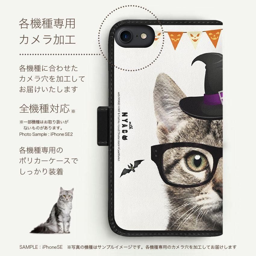 with NYAGO 手帳型 / 厚手 Google Pixel NYAGO キュート メガネ ソラちゃん フェイス キャット ? ハロウィン ブラック 2155